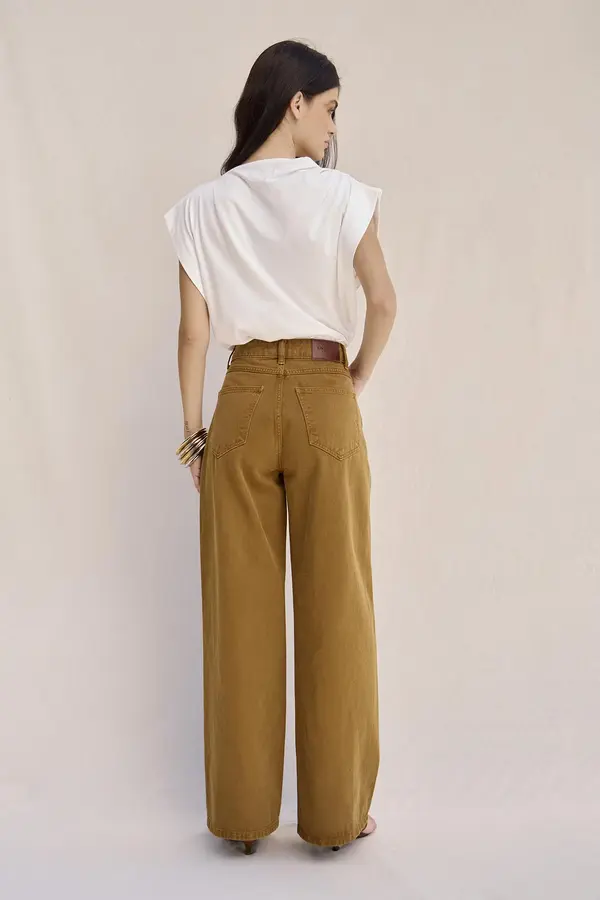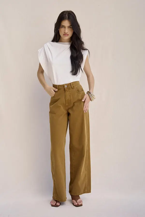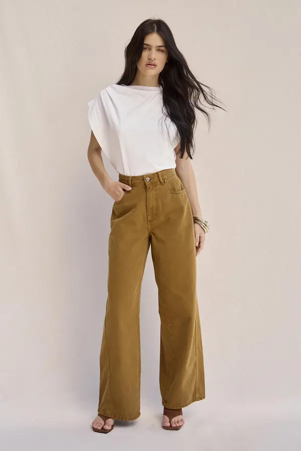 A calça de sarja reta ocre traz sofisticação e modernidade em uma tonalidade quente e elegante. Com caimento reto e cintura média, é perfeita para looks casuais ou produções mais refinadas. Combine com tons neutros ou terrosos para um visual atual e equilibrado. A peça possui composição 100% algodão, modelagem reta deslocada do corpo, bolsos frente e costas.