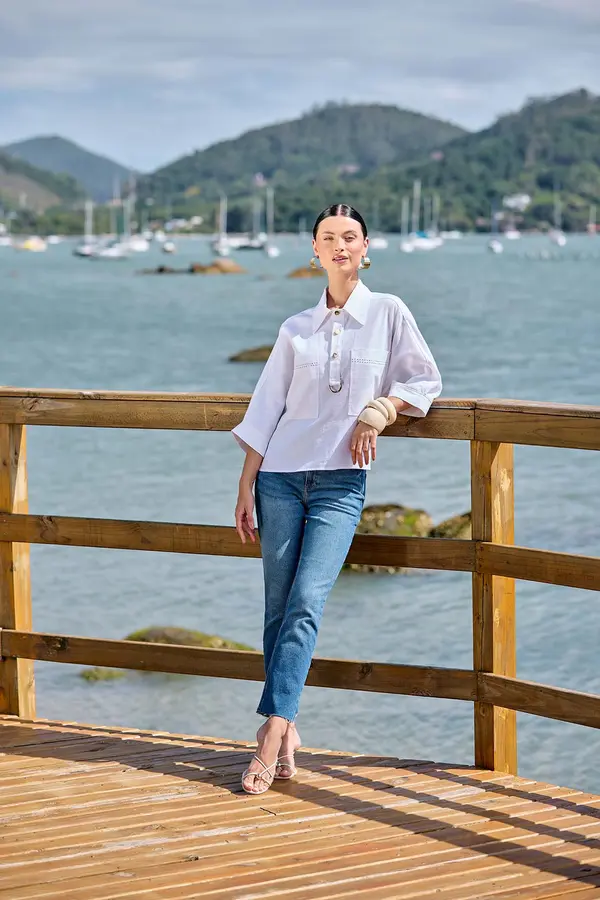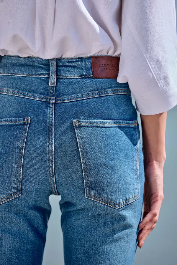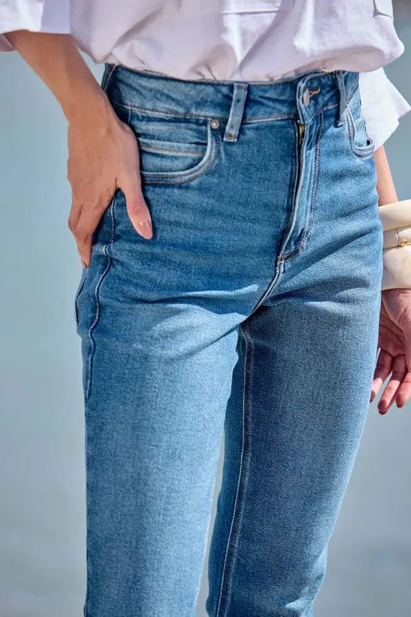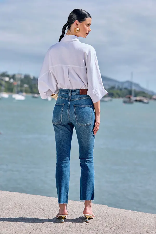 - CALÇA JEANS RETA CROPPED DENIM MÉDIO
