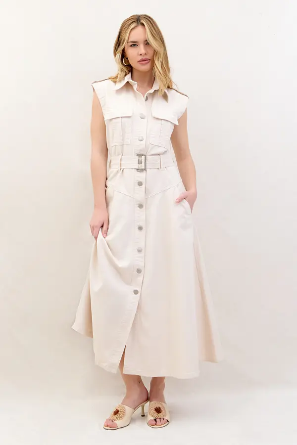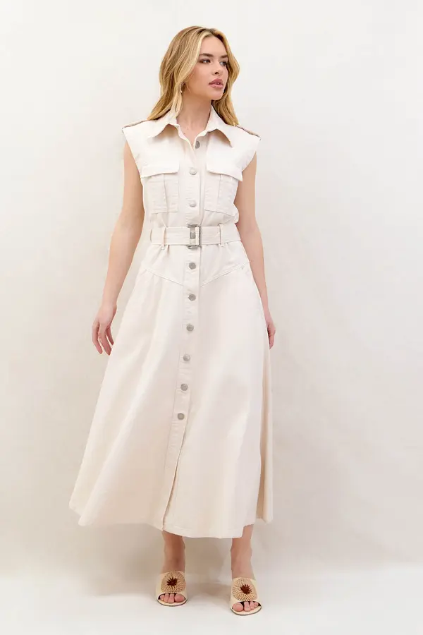 VESTIDO DE SARJA MIDI COM CINTO OFF WHITE